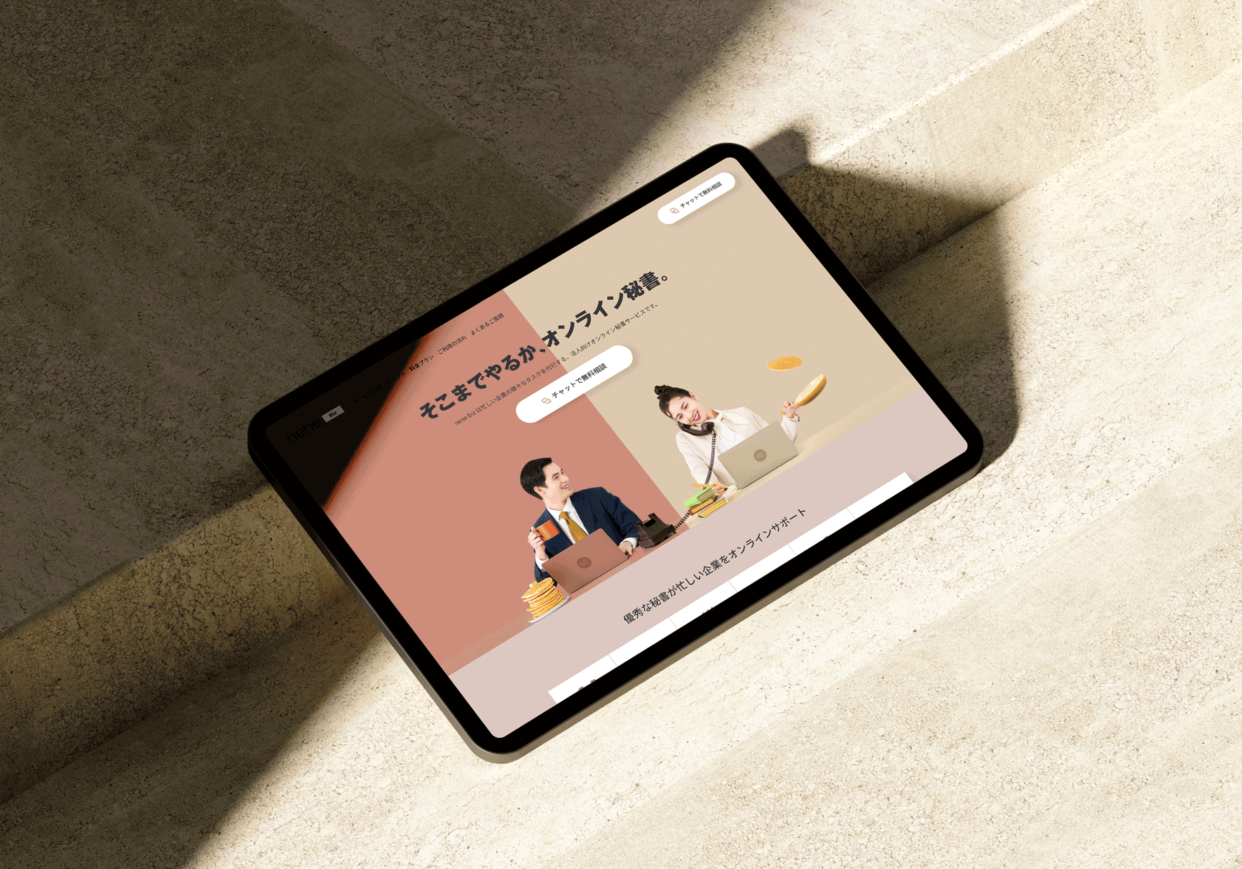 Nene is an online concierge service that offers a variety of support for businesses in Japan. Our challenge with this project was to distinguish Nene from other online concierge services. In addition to establishing professional approaches and brand messaging, we ensured that the brand's visual design is unique and captures people's attention online. While other competitors rely on stock photos to create basic and simple websites, we captured original photos that tell a story and communicate with our audience through visuals.